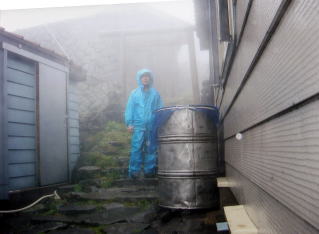 雨が降っていたので、山小屋の隅に荷物を置かせてもらい、山頂に向かう。