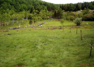 広さは約19000uあり、中央が凹形の地形になっていて、木道が整備され、すずらんの花が咲き誇っている。ここで12:50まで昼食と散策の時間だ。相変わらず小雨が降っているので、大きな木の下で幹を背中にして持ってきた昼食を広げる。すずらんの他、赤いクリンソウ、黄色いキンポウゲ、白いアマドコロ、そしてまだ蕾が多いオレンジ色のレンゲツツジ、桜さらに白と赤のグミの花。