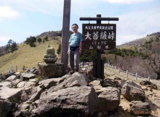 食後また登り始める。まだ峠まで500mの登りだ。休憩したので少し楽になった。途中マウンテンバイクに乗った若い2人連れとすれ違う。杉の林になったと思ったら、登りも緩やかになり、少し下って、フルコンバにつく。フルコンバからはのぼりも緩やかになり、石畳の道も出てきて歩きやすくなった。やがて右に稜線が見え大菩薩峠の標識の頭らしきものが見えたと思ったら、大菩薩峠にヒョイと出る。