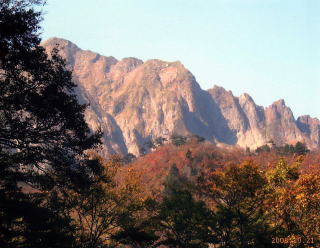 見上げる岩の塊の山は、迫り来て、垂直に近い壁があちこちにあり、息をのみ、圧倒される。すごいの一言で、あとは何も出ない。若さがあると、挑戦したくなるものなのか!ただただ黙って見るだけだ。昼食を兼ねて休憩をする。おにぎりを食べながらも思わず、ずっと見上げている。ここにいる間は感嘆しながら、ずーと見上げている。すごいの一言以外、他の単語も見つからない。