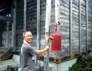 山頂には大きな神社とオレンジ色の半鐘があり、試しに叩いてみる。