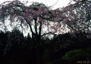 棚頭の集落からは急いで歩いたので、20分で不老下バス停に出る。10年ほど前外山君と来たバス停だ。今日は枝垂桜が満開だった。