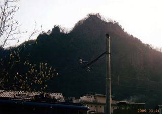 関所 鉄道文化村からザンゲ岩↓を仰ぐ