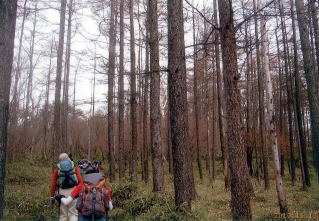 カラマツ林の中を歩くようになる。すっかり葉が落ちたカラマツ林の中は明るい。