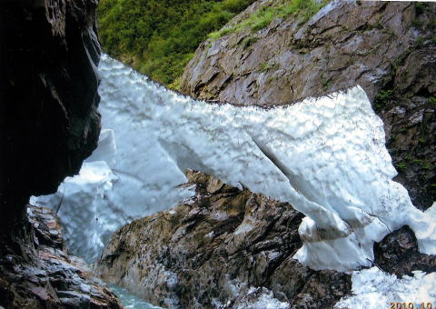 残雪があちこちにみられ、橋を形作っているところがあった。