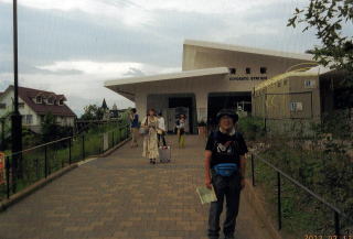 駅から出てすぐのYH(ユースホステル)前で迷いやや時間をロスする。舗装道路を下って橋を渡り、途中から小雨がぱらつき始める。