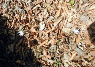 峠からの下り道は落葉樹が多く新芽も少ない。白石の滝もあったが、