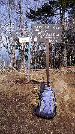 牛奥ノ雁が腹摺山は富士山が正面に見え、のんびりとした山頂だ。