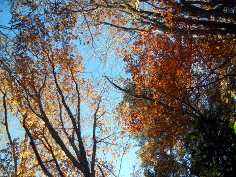 車道の先の道が良く分からず、探していたら、風穴にいた中国人らしき青年二人に追いつかれ、入口を誘導してもらう。道は落ち葉が多く、わかりにくくなったので、見失わないようにと思ったが、何せ早い!足も疲れてきたので、ストックを出し、追いつこうとするが、どんどん離される。