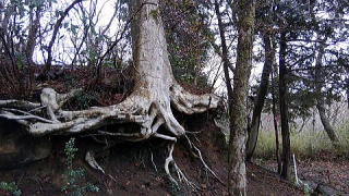 途中で、前日までの大雨で、木の根が激しく削られた樹を見かける。