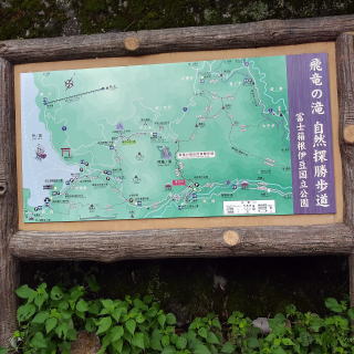 40分歩いてようやく飛竜の滝に着く。橋が架かっていて、見上げると音も水量もすごい滝だ。樹が邪魔しているので奥に進むと、上に人がいた。どうやら観望台があるようだ。