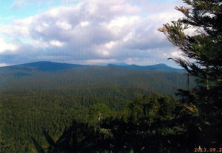 途中北方向の展望のよい個所があり、畚岳、焼山そして森吉山らしき山並が見えてくる。